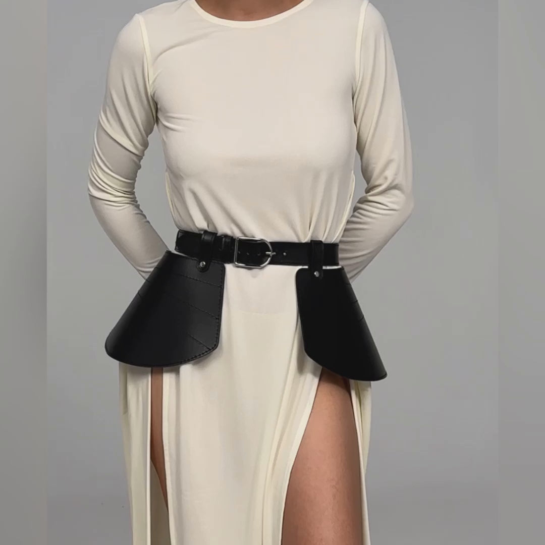 The Leather Peplum Belt ATHENA is an ideal accessory for adding a sophisticated twist to your outfits. Its adjustable design guarantees a perfect fit, making it suitable for various body types and fashion preferences. Whether you're dressing up for a formal event or looking to add a chic detail to your everyday attire, this belt is the perfect choice.