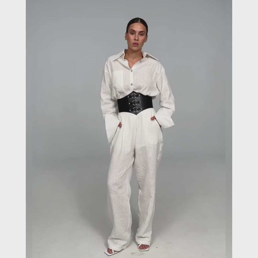 High-Quality Craftsmanship: The corset is crafted from premium leather, ensuring both durability and comfort. The robust construction includes reinforced boning and sturdy laces, providing a secure fit that accentuates your curves. Each detail, from the metal eyelets to the smooth leather finish, is meticulously crafted to deliver both style and function.